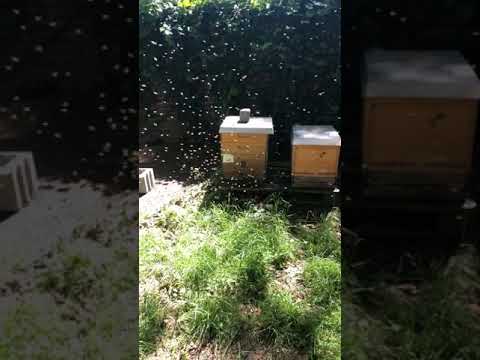 Ein Bienenschwarm ist die natürliche Vermehrung eines Bienenvolkes. In einem spektakulären Schwarmprozess fliegen etwa die Hälfte aller Bienen zusammen mit ihrer Königin in einem beeindruckenden Flug aus der alten Bienenwohnung. Es sieht aus wie ein kleiner Wasserfall aus Bienen, der zu einer großen Wolke wird und durch die Luft strömt!